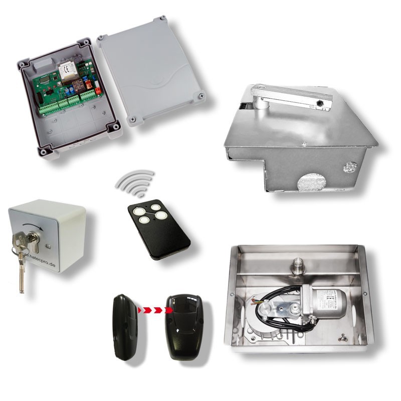 1 St. Unterflurantrieb Shark im Edelstahl-Einbaukasten, mit Schlepparm und Notentriegelung